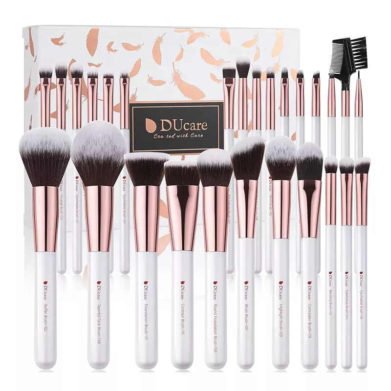 This 27-piece makeup brush set is designed to help you create professional-quality makeup looks with ease. Each brush is made with soft synthetic fibers, ensuring smooth, flawless application every time, whether you’re using liquid, powder, or cream products. The ergonomic wooden handles give you a comfortable grip, allowing you to work with precision and control. The beautiful, classic design with FSC-certified materials not only elevates your makeup routine but also aligns with sustainable and eco-friendly practices. From foundation to contouring and eyeshadow, this brush set covers all your beauty needs in one set.