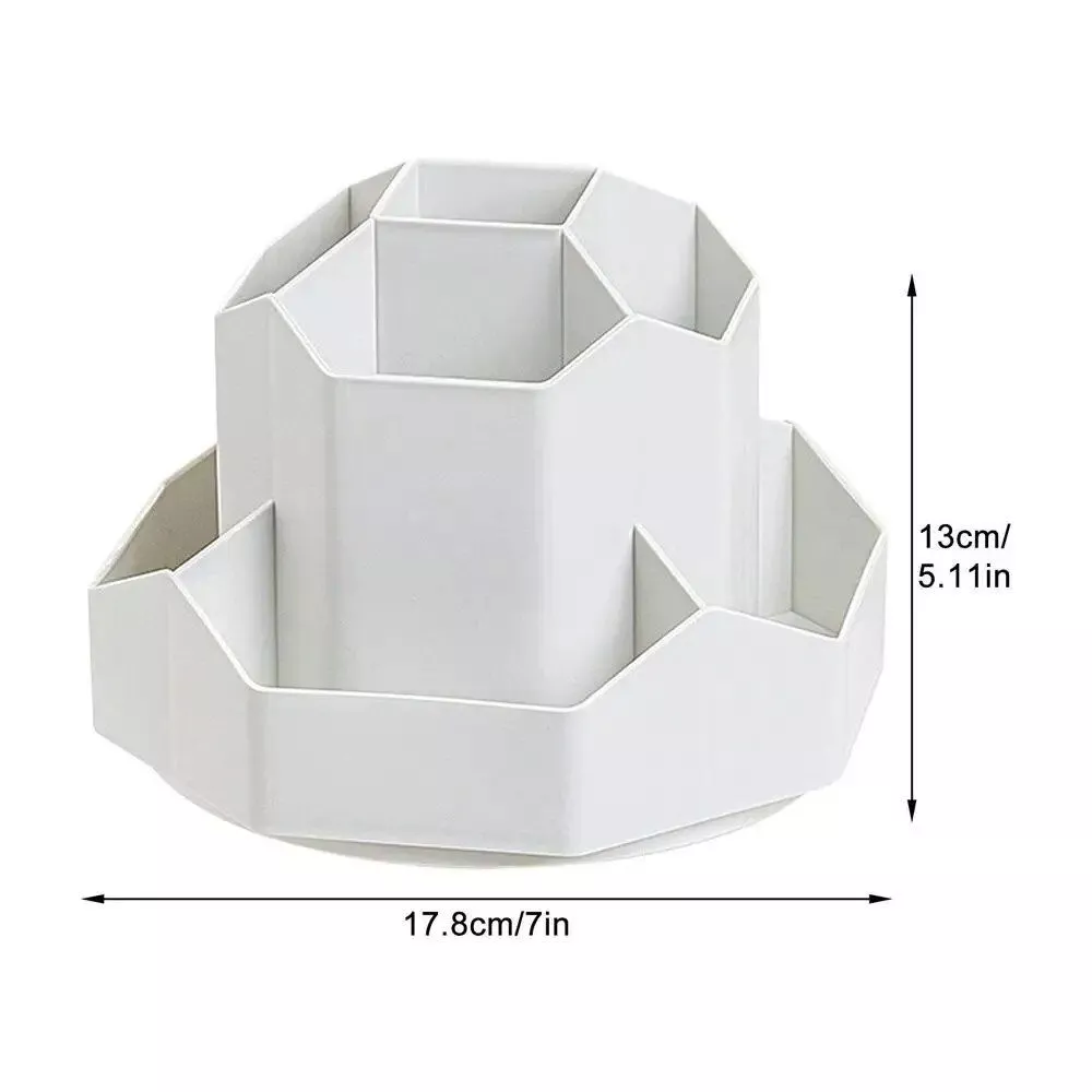 Introducing our revolutionary 360° Rotating Desk Organizer, a modern solution for a clutter-free and stylish workspace. Ideal for both office and home use, this multifunctional organizer is designed to cater to your every need, ensuring a neat and efficient environment. Its large capacity and smart design make it perfect for storing pens, pencils, makeup tools, and more, keeping them at your fingertips whenever needed.