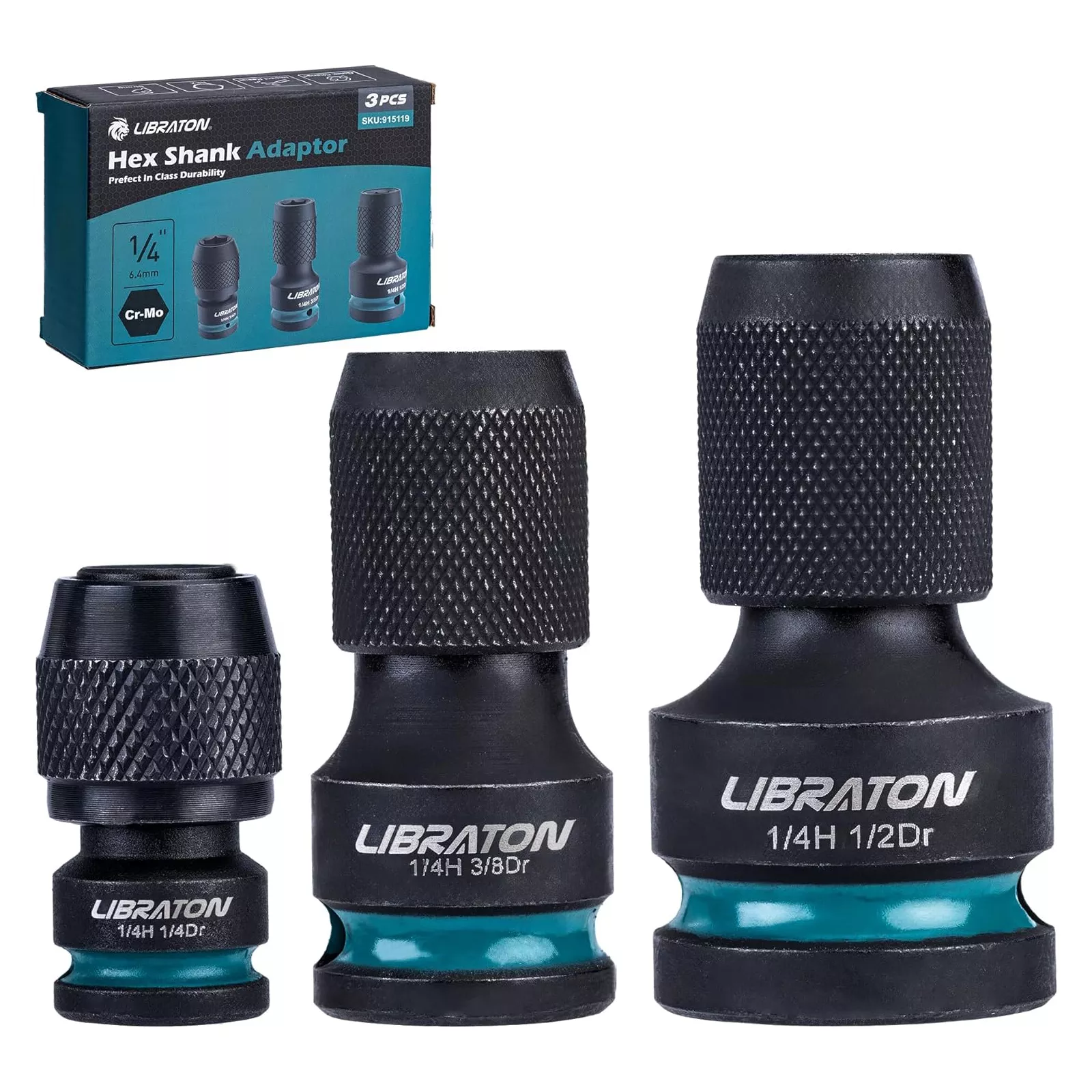 Unlike standard bit holders, these converters are made to take a beating—literally. The Cr-Mo steel body and precise design allow for tight, secure bit holding even under heavy torque. The quick-release mechanism boosts your efficiency, and the 3-size adapter options ensure compatibility with a wide range of tools. No pockets of downtime. No need for extra drivers. Just one sleek set to get the job done better and faster.