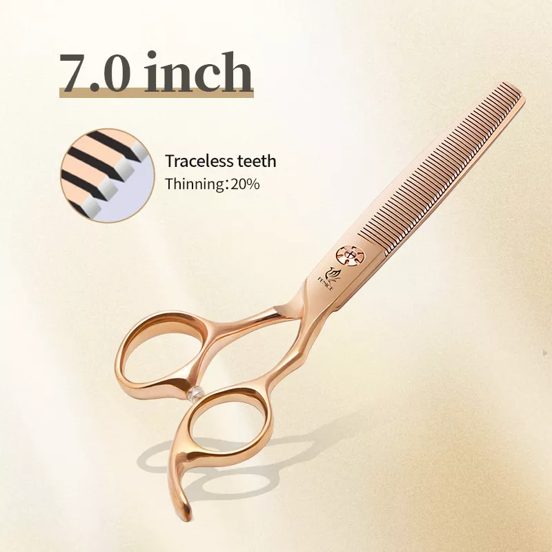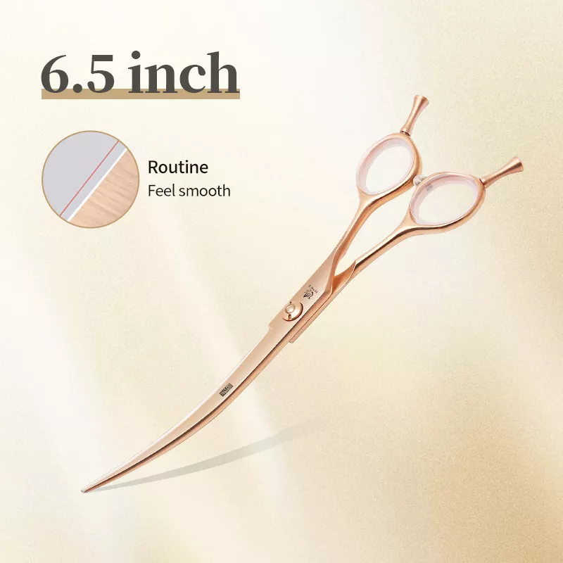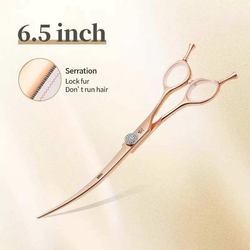 Turn every grooming session into a smooth, precise, and stylish experience with these 6.5/7.0 inch Rose Gold Curved Thinning Scissors. Designed specifically for pet grooming, these high-quality shears are crafted from premium JP440C stainless steel, giving them lasting sharpness and durability. Whether you’re a professional groomer or a dedicated pet parent, these scissors are built to deliver salon-quality results with ease and comfort.