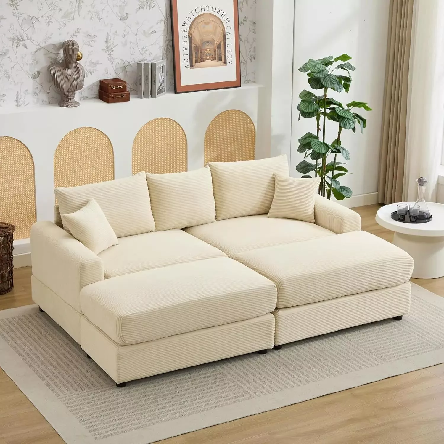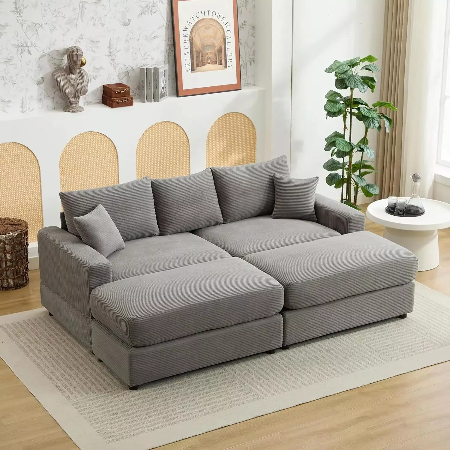 82.68″ Deep Seat Modular Corduroy Sectional Sofa Bed with Pillows & Ottomans