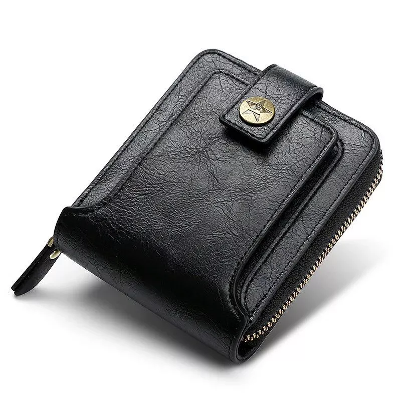 Classic Vintage Men’s PU Leather Short Wallet with Zipper & Hasp Closure