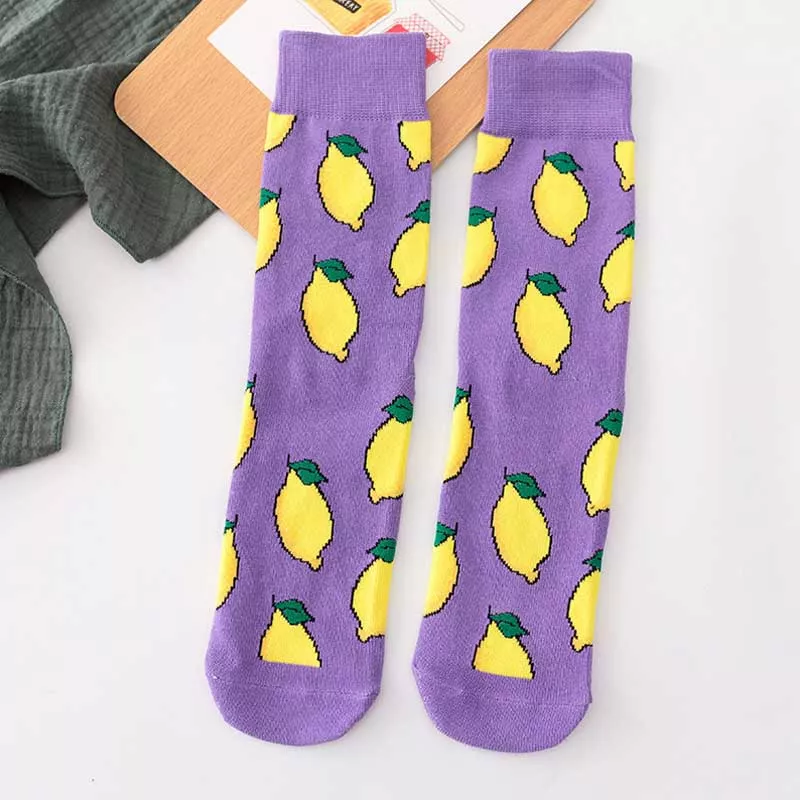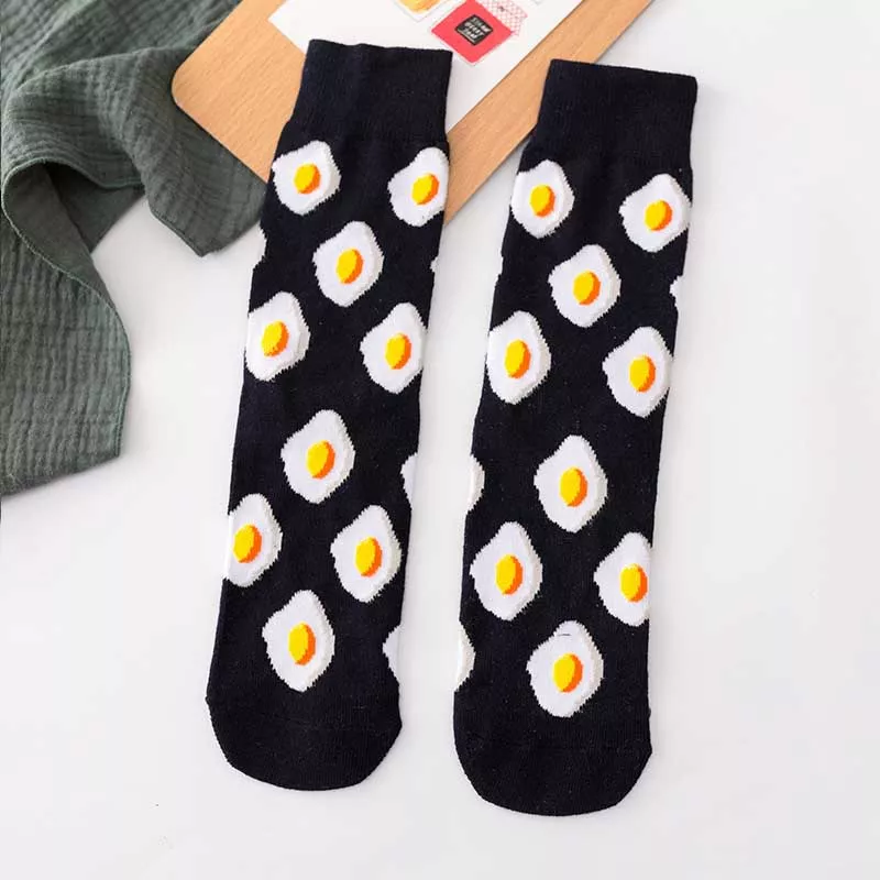 Step into a world of color and laughter with these Colorful Cartoon Food Socks. Featuring cheerful designs like bananas, avocados, lemons, eggs, cookies, and donuts, these socks are made to brighten your day and your outfit. Whether you’re heading out to skate, lounge at home, or add a playful twist to your casual wear, these novelty socks are your new go-to accessory.