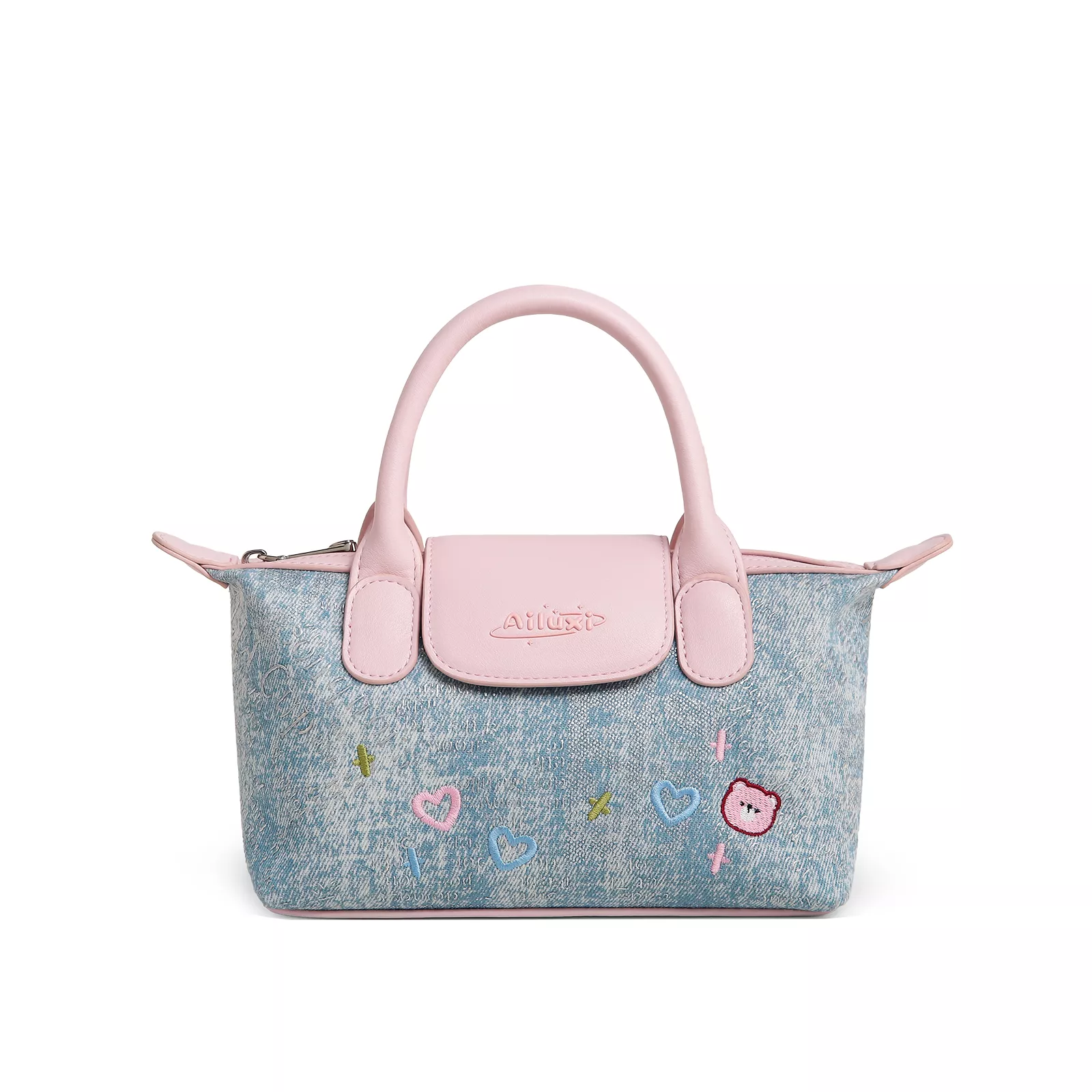 Step into effortless style with this fashionable denim blue and pink mini dumpling bag — a must-have accessory for any modern woman who loves to blend playful charm with everyday functionality. Designed with a soft, satchel shape and eye-catching embroidery details, this mini shoulder bag is perfect for adding a pop of personality to any outfit. Whether you’re heading out for a coffee date, shopping with friends, or just want to keep your essentials close in style, this small crossbody is your new favorite go-to.