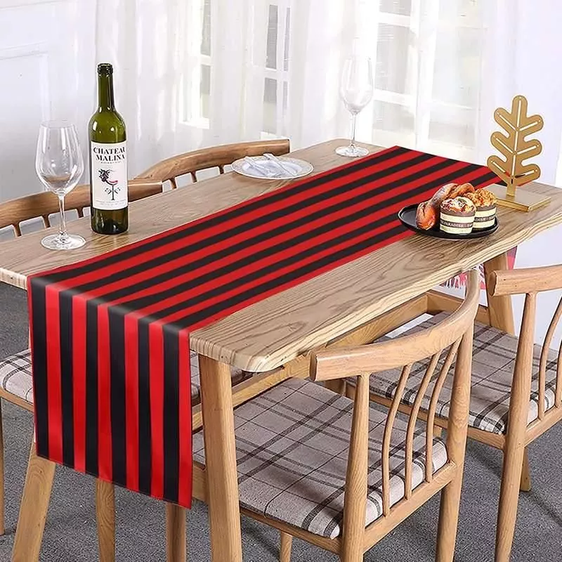Introducing our Elegant Black and White Striped Polyester Table Runner, a perfect blend of sophistication and durability for your indoor and outdoor settings. Whether you’re hosting a Halloween banquet, a wedding party, or simply enjoying a family dinner, this table runner adds a touch of elegance to any occasion. Its classic black and white striped design offers a timeless look that complements any décor, ensuring your table is always dressed to impress.