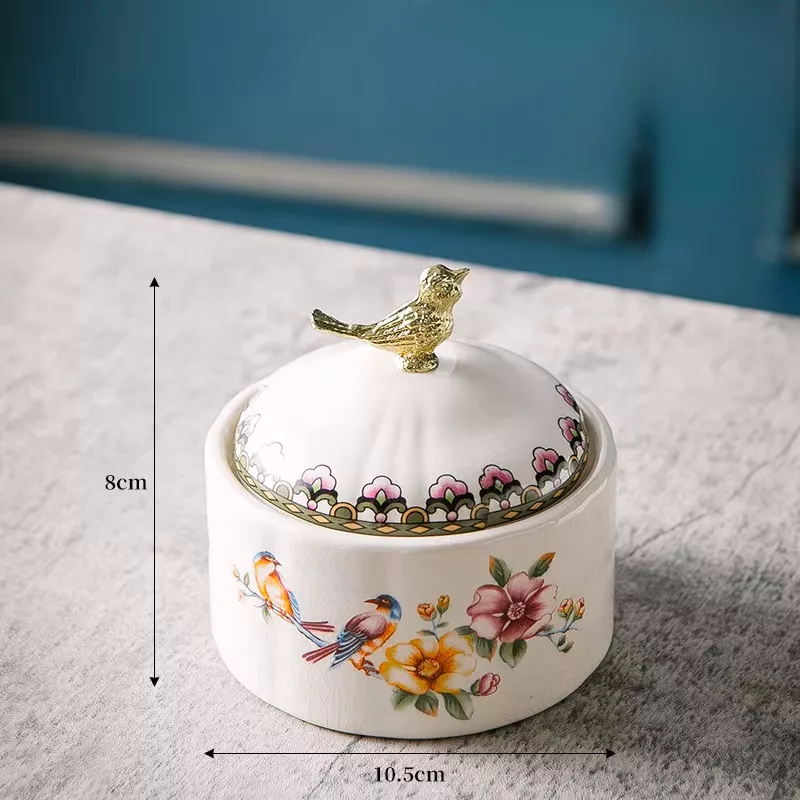 Gracefully combining form and function, this Elegant Ceramic Bird Jewelry Box is a delightful addition to any dresser, vanity, or bedside table. With its American retro style and European-inspired ice crack porcelain finish, this storage piece brings timeless elegance into your home. Whether you’re looking to keep your favorite trinkets safe or elevate your décor with a charming accent, this ceramic jewelry box does both—beautifully.