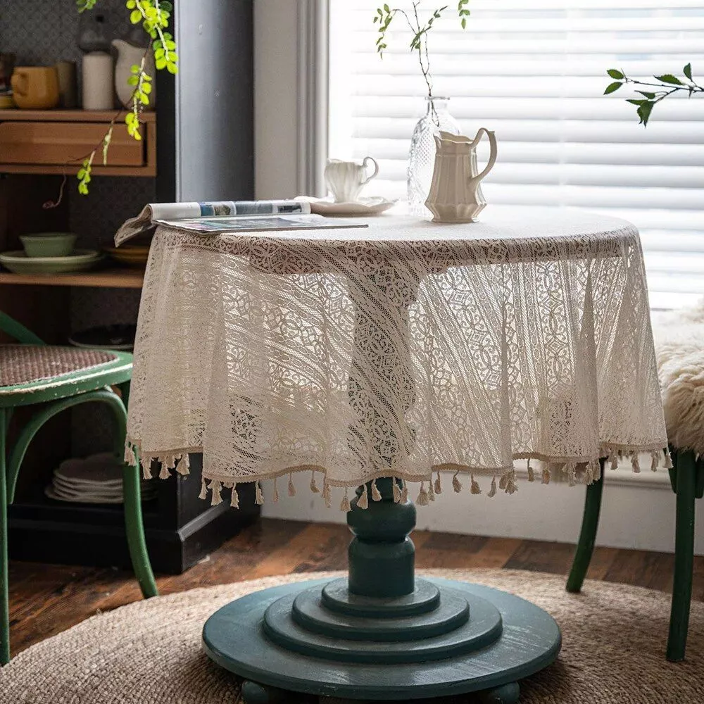 Crafted with a blend of premium cotton and polyester, this tablecloth is not only visually appealing but also durable and easy to maintain. The intricate crochet patterns, available in colors like Beige Copper, Rose, and Light Grey Flower, make it a versatile accessory for various interior themes, from pastoral to contemporary.