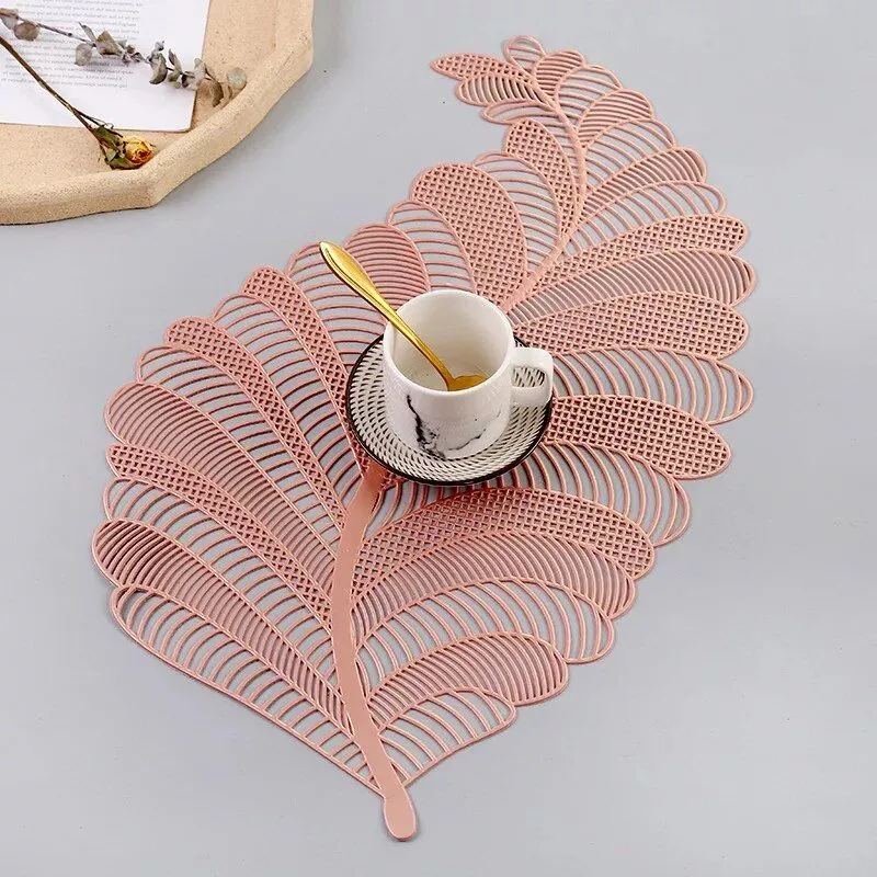 Enhance your dining experience with our Nordic-inspired PVC Leaf Placemat. This placemat is not just a decorative piece but a blend of modern style and practicality. Its unique leaf hollow design, combined with a sleek, modern aesthetic, makes it a must-have for any contemporary kitchen or dining room.