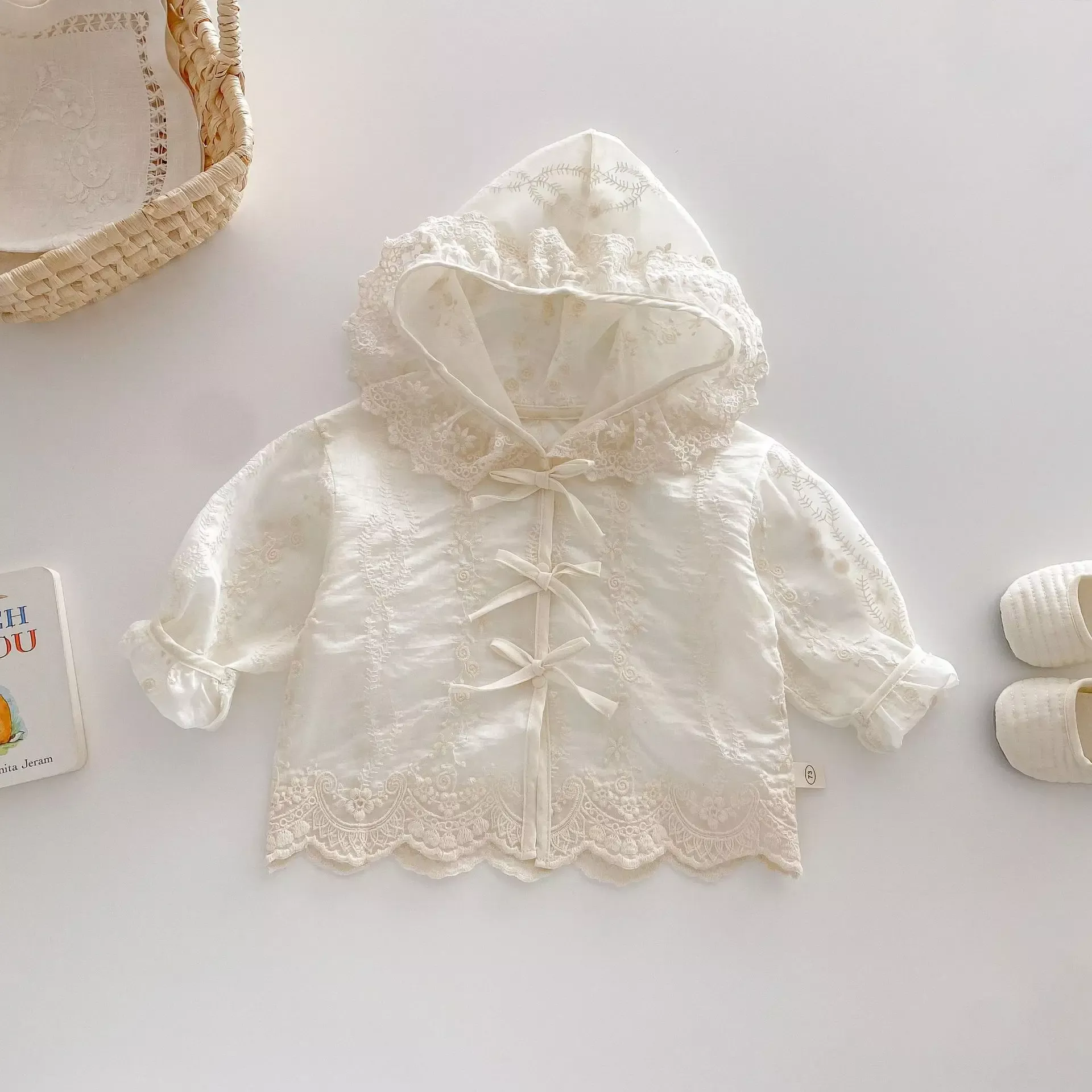 Keep your little one cool, comfortable, and stylish with this adorable Girls’ Summer Hooded Lace Blouse. Designed with delicate embroidery and lace trimming, this lightweight coat is the perfect blend of fashion and function for children aged 0 to 5 years. Whether it’s for a breezy summer evening stroll, a playdate indoors, or a visit to an air-conditioned space, this top is a go-to piece that adds elegance to everyday wear.
