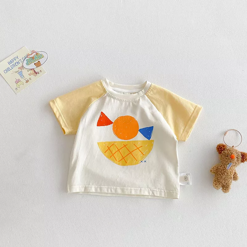 Unlike plain tees, this one is bursting with charm. The combination of cute cartoon prints and color block styling makes it a standout piece. It’s not only stylish but also made for comfort and durability—because we know kids love to move, jump, and play without restrictions.