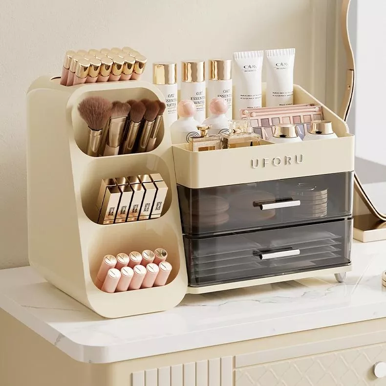 Keep your beauty essentials perfectly organized with the Large Capacity Makeup Organizer. Designed for those who love a tidy and stylish space, this multifunctional storage box offers ample room for skincare products, lipsticks, and more. Whether placed on a vanity, dressing table, or bathroom counter, it adds a touch of sophistication while keeping your favorite items within reach.