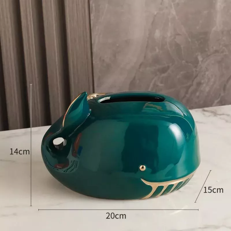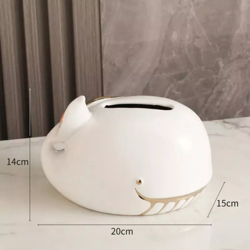 Luxury Ceramic Tissue Box – Cartoon Whale & Goldfish Napkin Holder for Home Decor