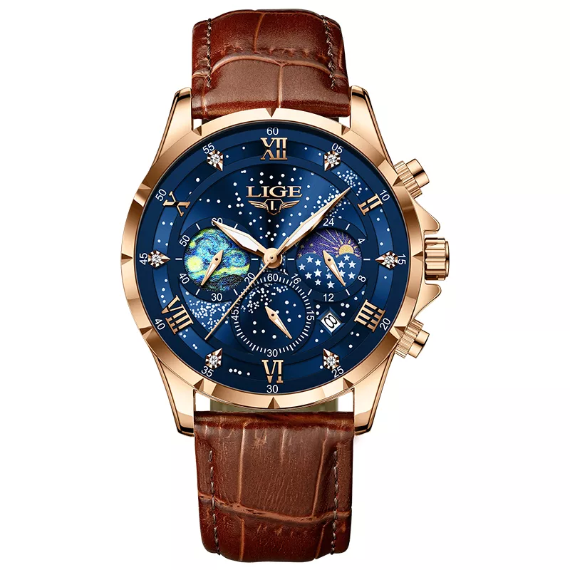 Elevate your everyday look with this luxury men’s chronograph watch — designed for the modern man who values both fashion and function. With a sleek stainless steel case, soft leather strap, and a bold dial that commands attention, this watch is more than just a timekeeper — it’s a statement. Whether you’re headed to a business meeting, a weekend getaway, or a casual outing, this watch is the perfect companion to complete your outfit.