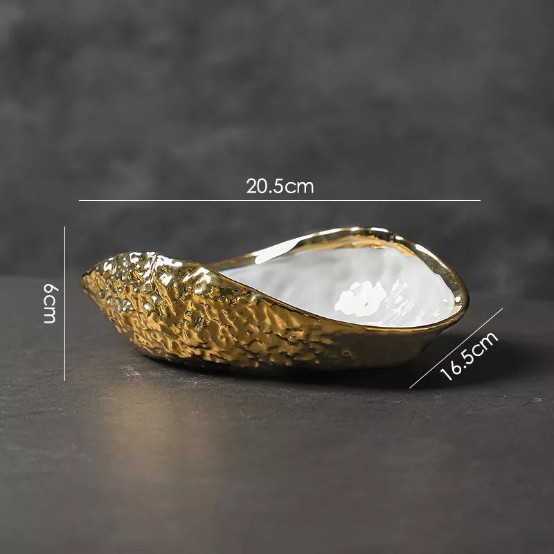 Add a touch of modern elegance to your dining table with this Luxury Rock Pattern Ceramic Plate. Designed with a sophisticated shell-like texture and finished with an exquisite electroplated surface, this plate is perfect for serving large dishes such as steamed fish, soups, and gourmet entrees. Its high-end design makes it ideal for home use, restaurants, and hotels, bringing a refined aesthetic to any meal.