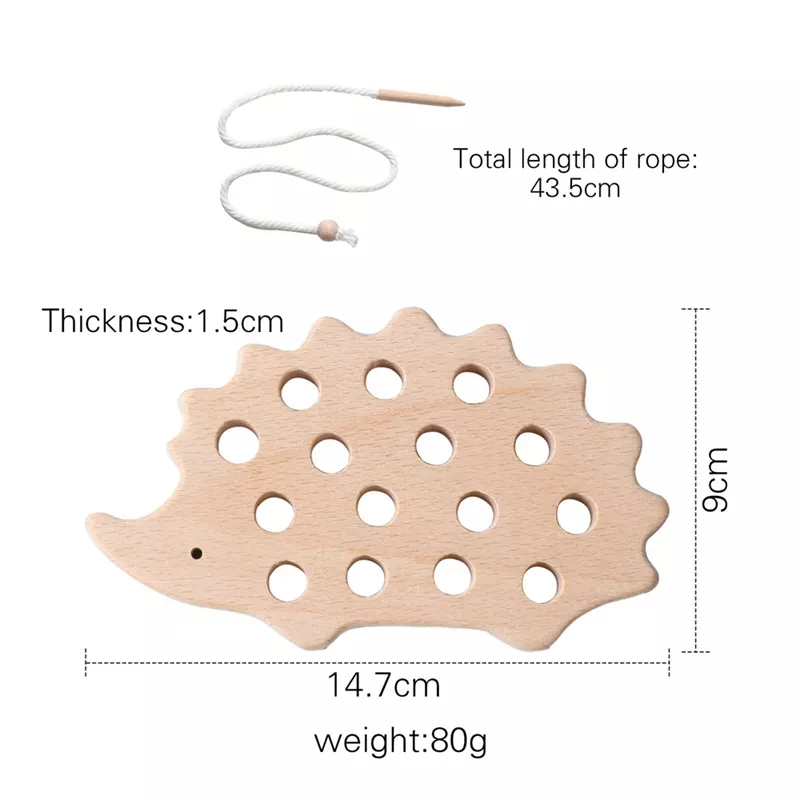 Give your child a hands-on learning experience with this adorable wooden hedgehog threading toy. Order now and watch their creativity and confidence grow!