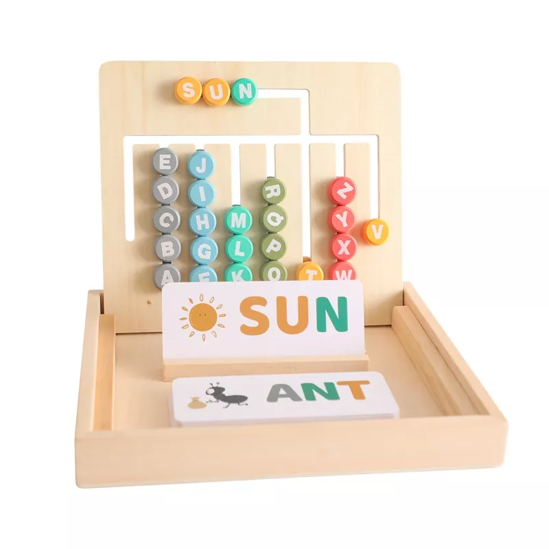 This wooden board offers double the learning opportunities. On one side, children can match letters to form words, helping them develop early literacy skills. Flip it over, and they’ll find a colorful shape-matching game that enhances their ability to recognize colors and patterns. This unique two-in-one design keeps kids engaged while reinforcing essential learning concepts through play.
