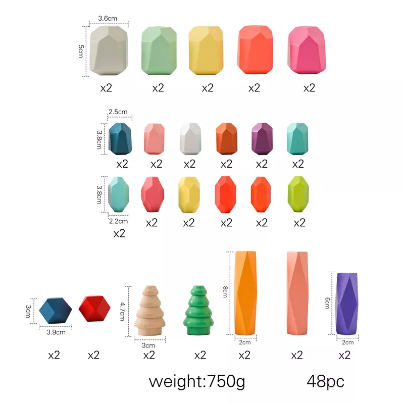 Made from premium-quality wood, each piece is smooth, durable, and safe for little hands. The non-toxic, child-safe paint ensures a worry-free play experience. These blocks are lightweight yet sturdy, making them ideal for toddlers and young children to manipulate, stack, and balance.