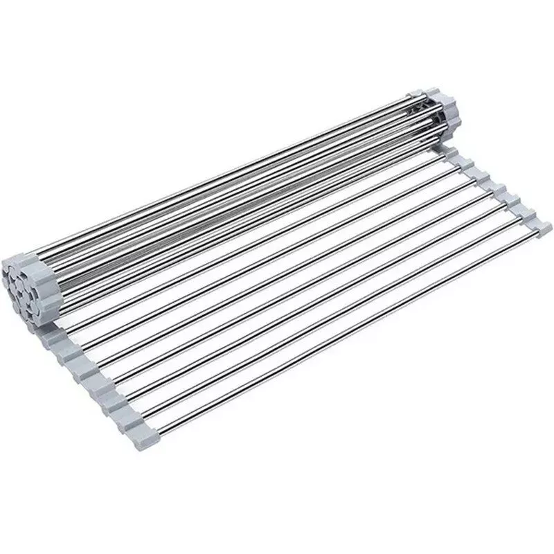 Our dish drainer is ingeniously designed to occupy minimal space while maximizing functionality. At 37/47cm in length and available with 12/15/18 robust tubes, it’s engineered to fit neatly over your sink. The combination of sturdy stainless steel and heat-resistant silicone ensures longevity and versatility. Whether drying dishes, rinsing produce, or cooling baked goods, this rack is your go-to kitchen ally. Its foldable nature and easy storage capabilities make it an essential addition to your kitchen repertoire.