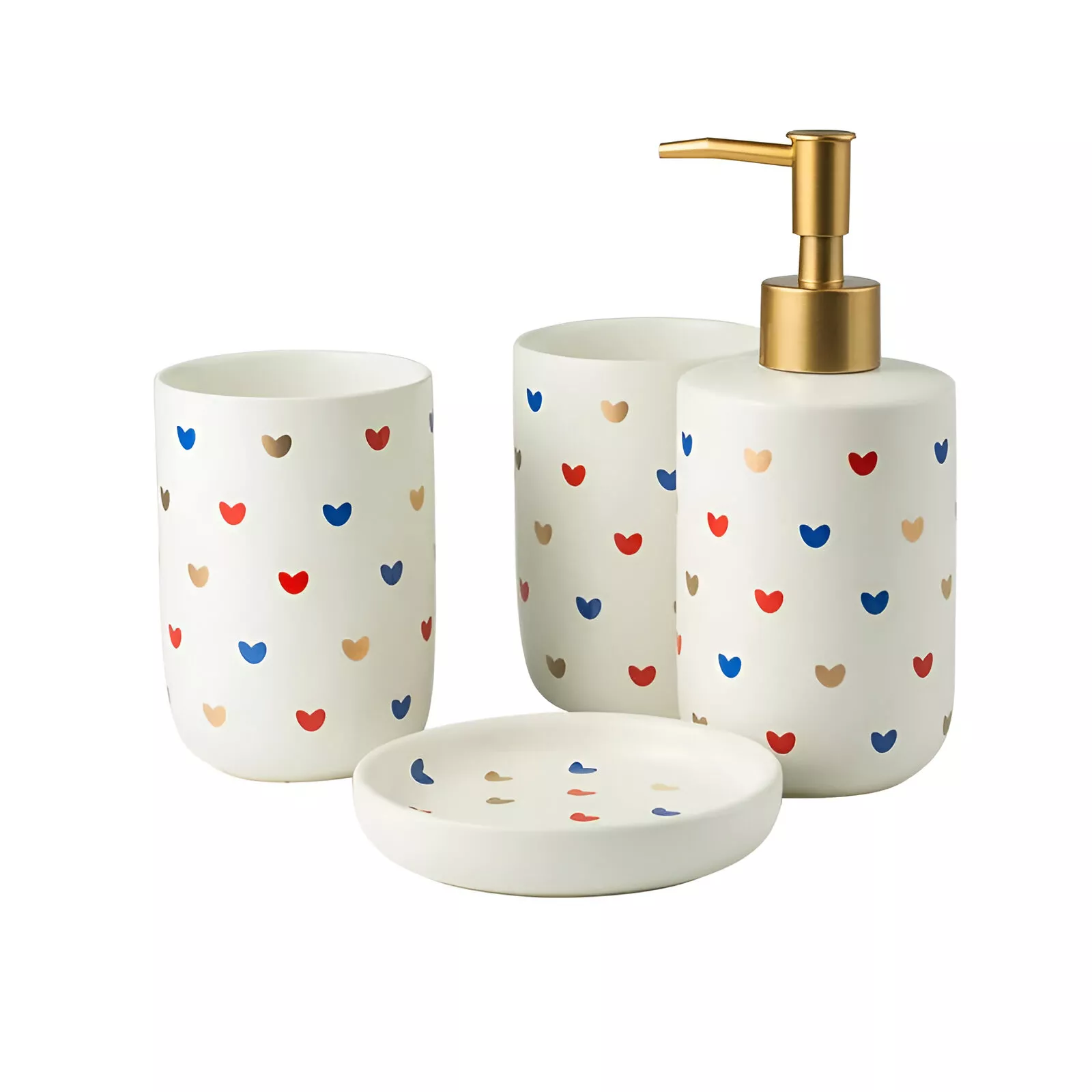 • Set Includes: Emulsion bottle, mouthwash cup, toothbrush holder, and soap dish