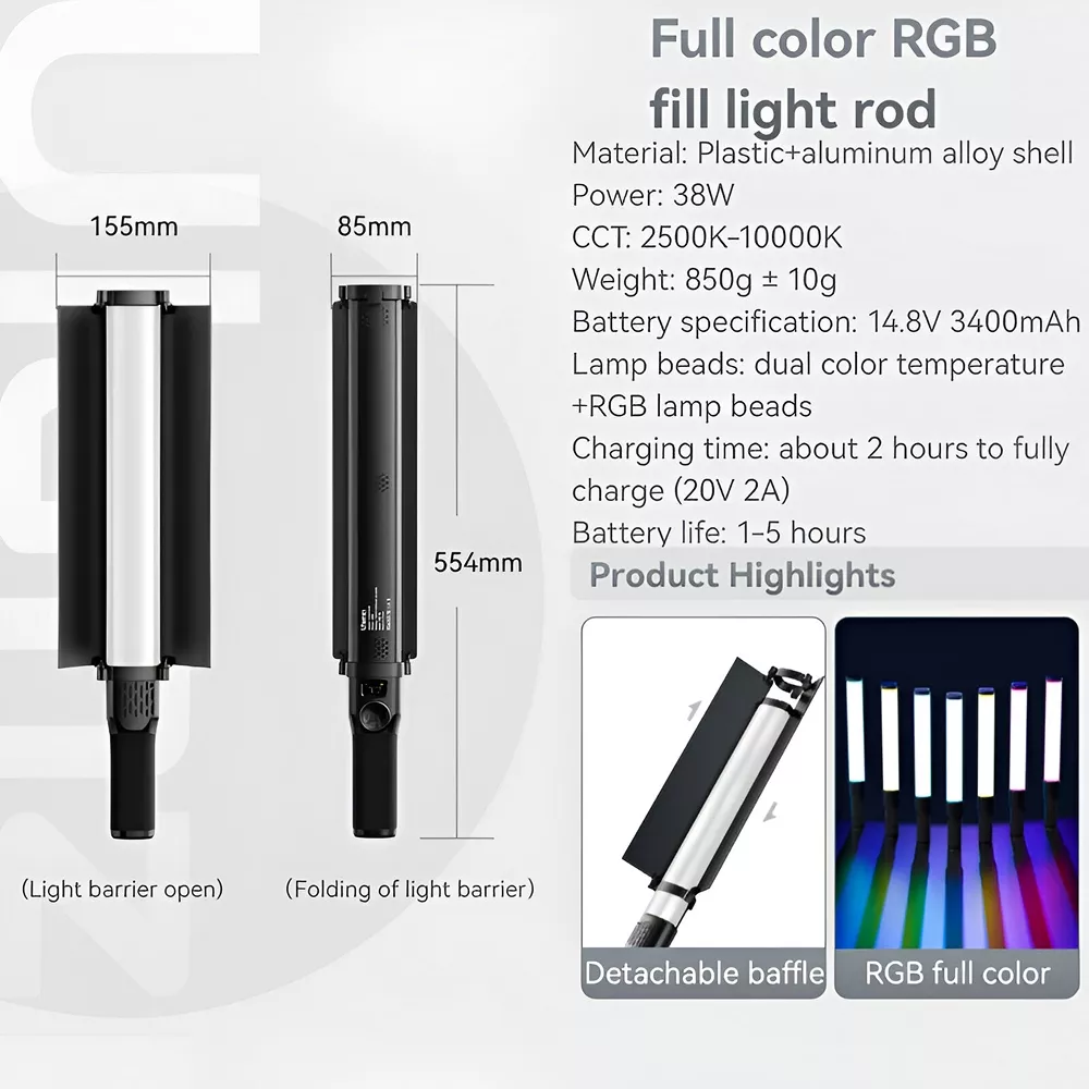 What makes this product truly special is its ability to combine professional-grade light output with a fully adjustable RGB system in a handheld format. Whether you’re working on cinematic shots or just need reliable fill light on the go, this wand adapts to your creative needs with ease.