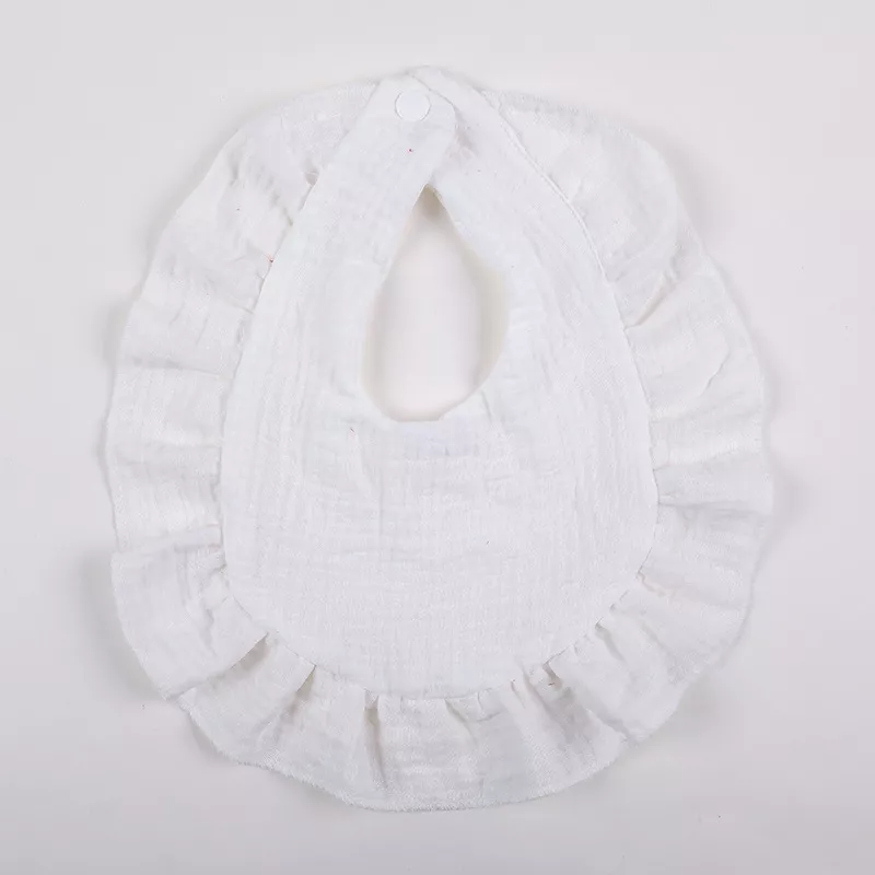 Made from breathable, ultra-soft cotton, this bib is gentle against your baby’s delicate skin. The ruffle design and solid color with delicate lace detailing make it more than just a practical item – it’s a stylish accessory that works for both baby boys and girls. Perfectly sized at approximately 13.7 x 8.3 inches, it provides full coverage without restricting movement.