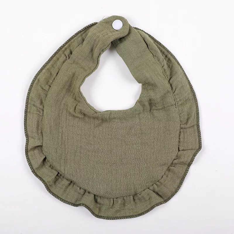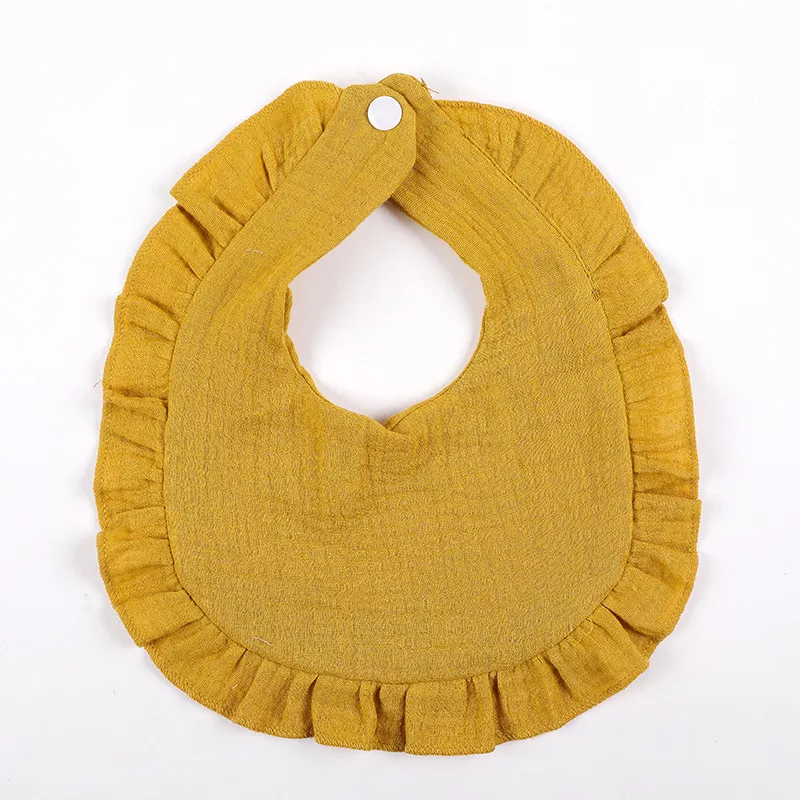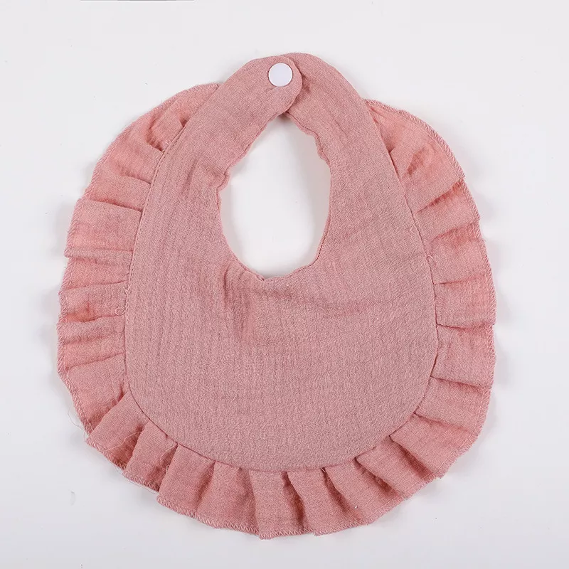 What makes this bib truly special is its attention to detail – the soft ruffles, the elegant lace trim, and the versatile solid colors. It’s not just a bib; it’s a statement piece that completes your baby’s outfit while keeping them clean and dry. Whether you’re dressing your little one for a casual day or a special occasion, this bib brings both function and flair.