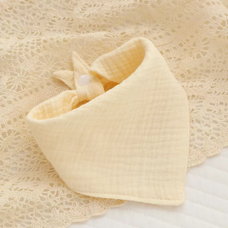 Say goodbye to constant outfit changes and hello to dry, happy little faces. This ultra-soft cotton muslin baby bib is thoughtfully designed for babies aged 0 to 2 years, offering a perfect blend of comfort, absorbency, and style. Crafted from breathable, gentle cotton muslin, this solid color triangle bib doubles as a burp cloth, saliva towel, and even a fashionable scarf. Whether you’re feeding your little one or out for a stroll, this bib is your go-to for drool protection and daily messes.