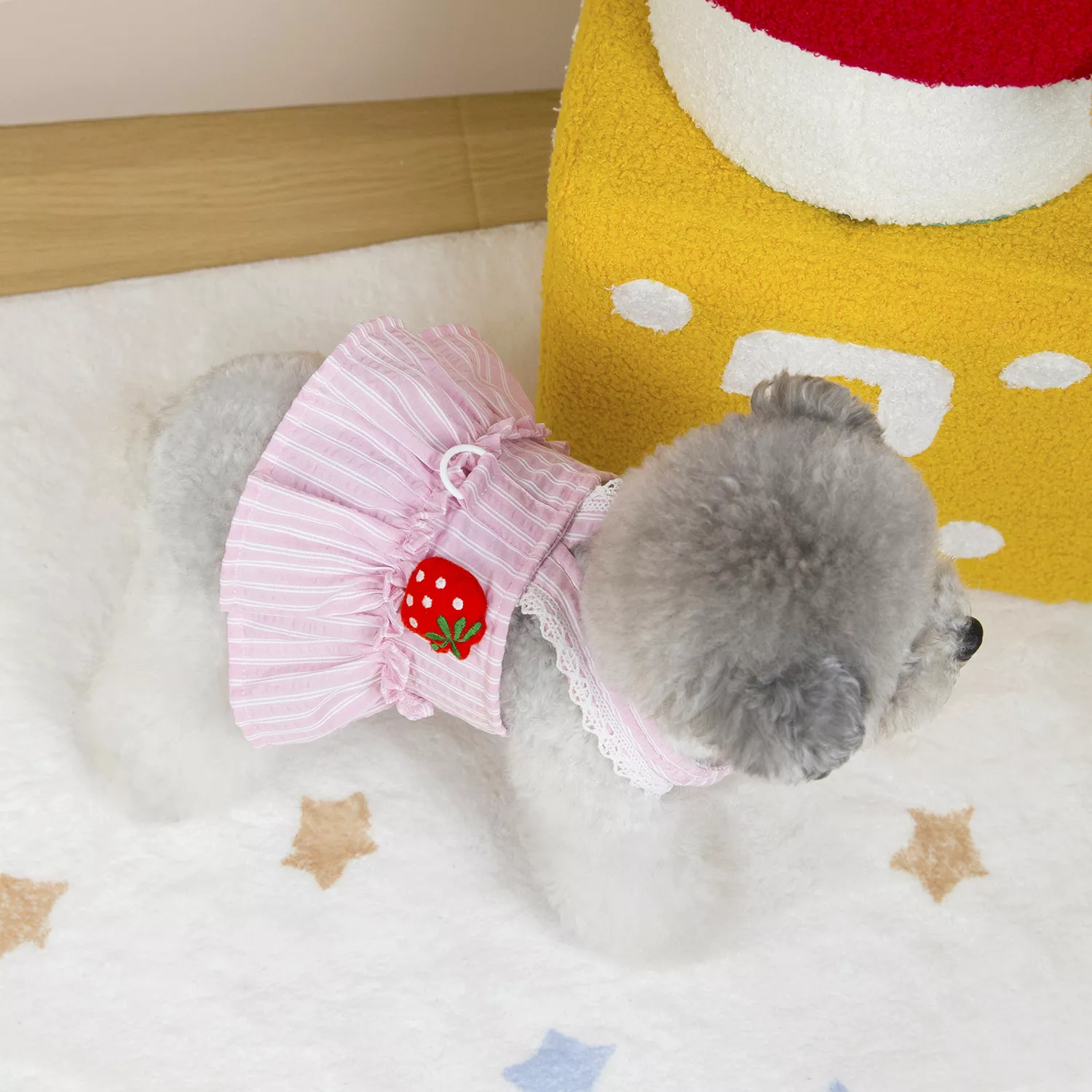 If you’re looking for a way to combine comfort, style, and practicality, the Striped Strawberry Dog Dress with Harness is your go-to choice. It’s more than just clothing—it’s a personality statement for your pet. Perfect for small dog breeds like Chihuahuas, Yorkies, or Pomeranians, and even fashionable cats who love to strut their stuff.