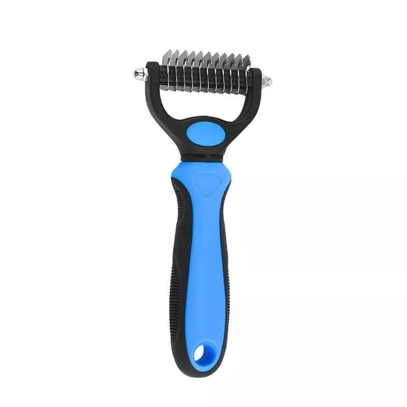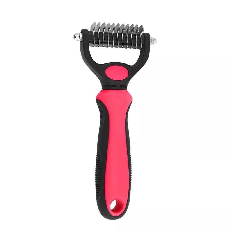 I've finally found the holy grail of pet grooming with this double-sided hair remover! It's a complete lifesaver, tackling the stubborn knots and loose fur on my golden retriever with ease. The stainless steel teeth glide through tangles without any discomfort, leaving behind a beautifully smooth coat. What's more, I've noticed a healthy sheen and less shedding around the house. The ergonomic design makes it comfortable for both of us during grooming sessions. A must-have for any pet owner tired of fur-covered furniture!