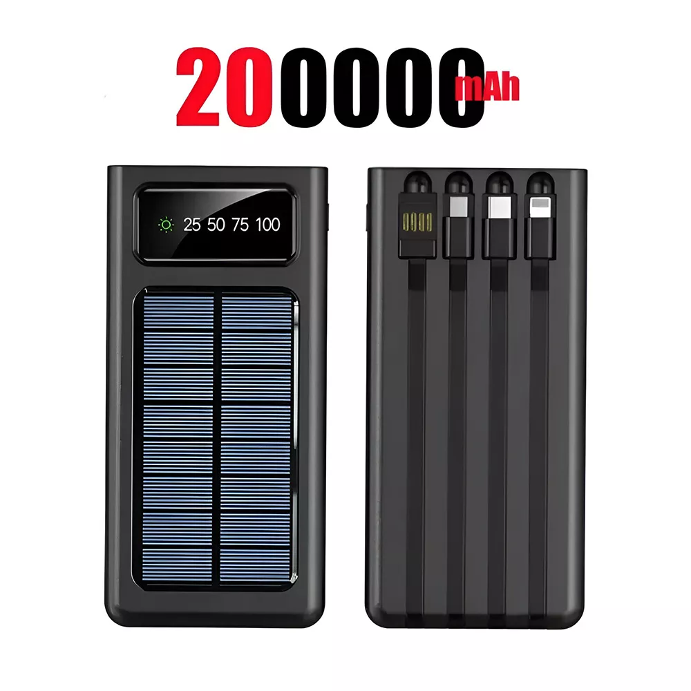 Whether you’re on the move, exploring the outdoors, or just want to stay charged all day, this ultra high-capacity 200000mAh solar power bank has your back. Built for serious power needs, it’s the perfect portable charging solution for your smartphone, tablet, or any USB-powered device. Designed with convenience and versatility in mind, it features built-in charging cables, solar charging capability, and an LED flashlight—everything you need to stay powered up, wherever life takes you.