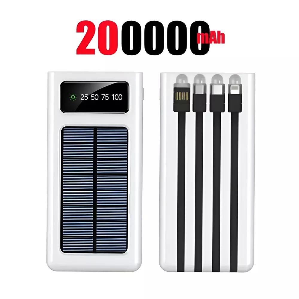 Ultra High Capacity Solar Power Bank 200000mAh with Built-in Cables & LED