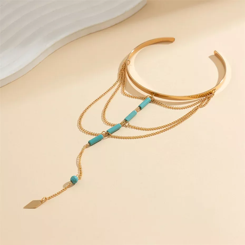 Turn heads and express your free-spirited side with this stunning vintage-inspired upper arm cuff bracelet. Designed for the modern woman who loves to mix fashion with individuality, this accessory blends artistic charm with timeless elegance. Featuring a shimmering crystal tassel pendant and bold geometric design, this bracelet wraps gracefully around your upper arm for a statement look that’s both feminine and fierce. Whether you’re styling a festival outfit or adding flair to an evening look, this boho-chic cuff elevates any ensemble.