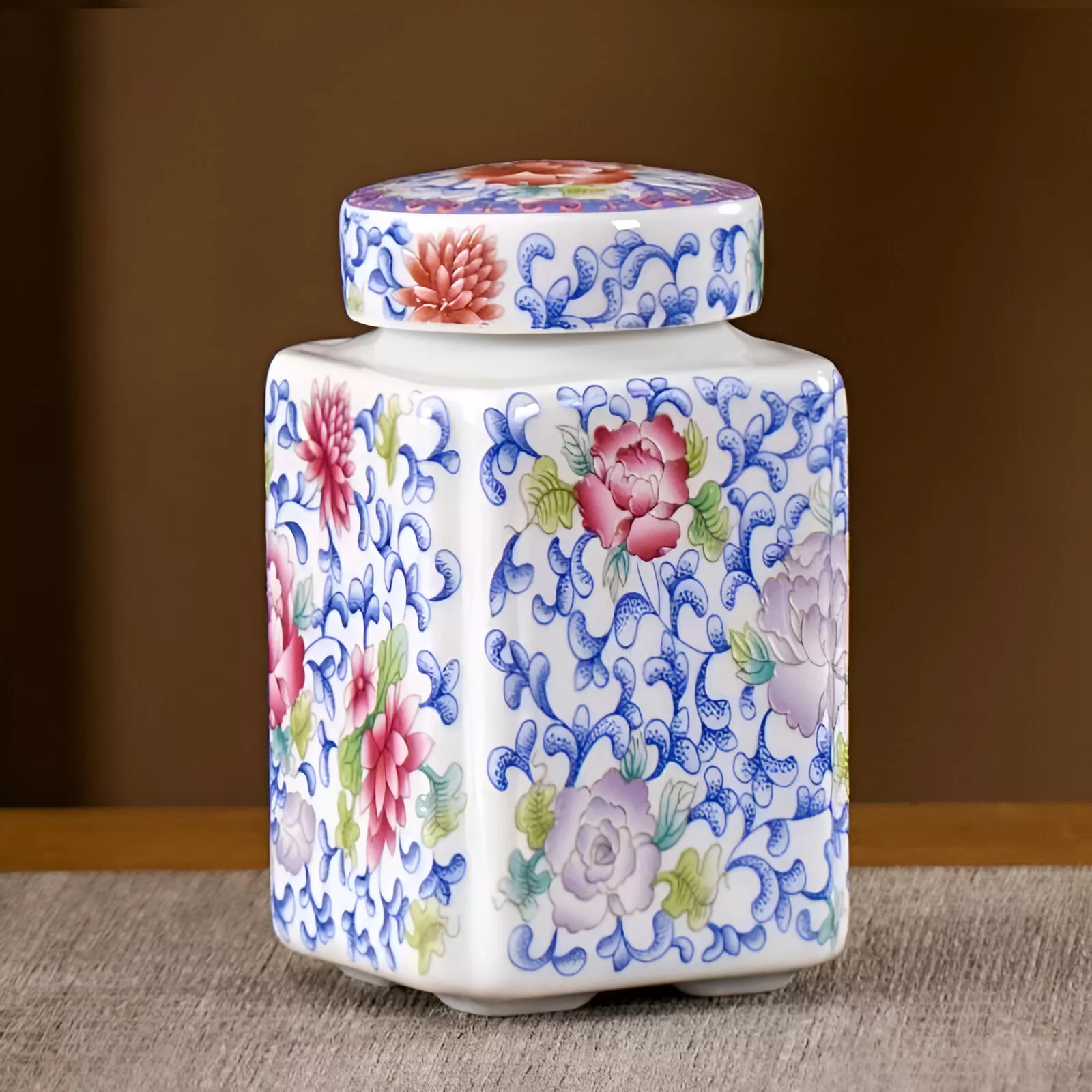 Handcrafted from high-quality ceramic, this tea caddy is both decorative and functional. Its smooth enamel finish showcases intricate patterns that blend art and practicality. Designed with a tight-sealing lid, it keeps your contents fresh and protected from moisture. Use it to store your favorite loose-leaf teas, herbs, coffee beans, or even small keepsakes – the possibilities are endless.