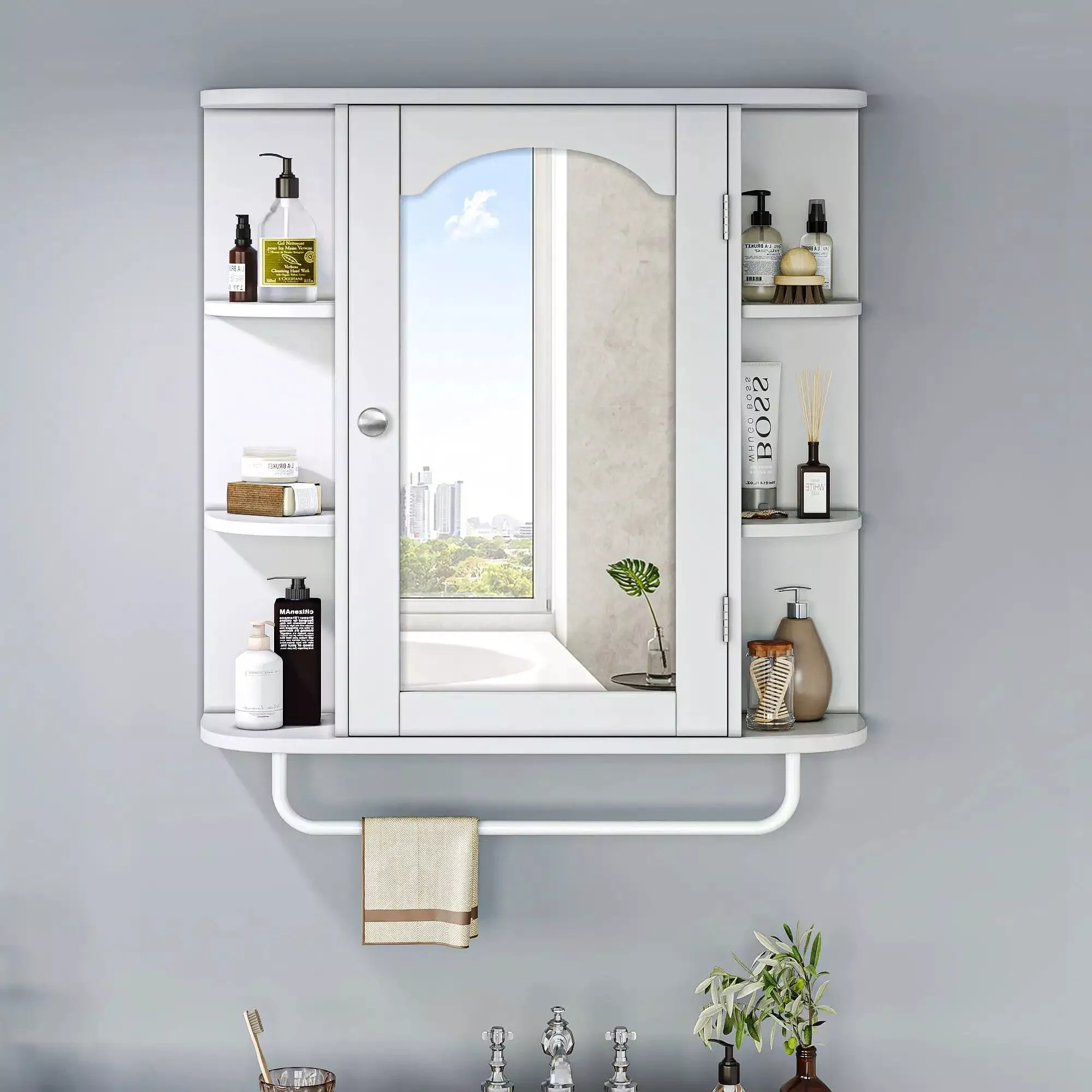 This cabinet stands out with its modern minimalist style, high-quality materials, and multi-room versatility. The arched mirror adds a unique touch, making it more than just a storage unit. It’s a piece of art that elevates the look of your home.