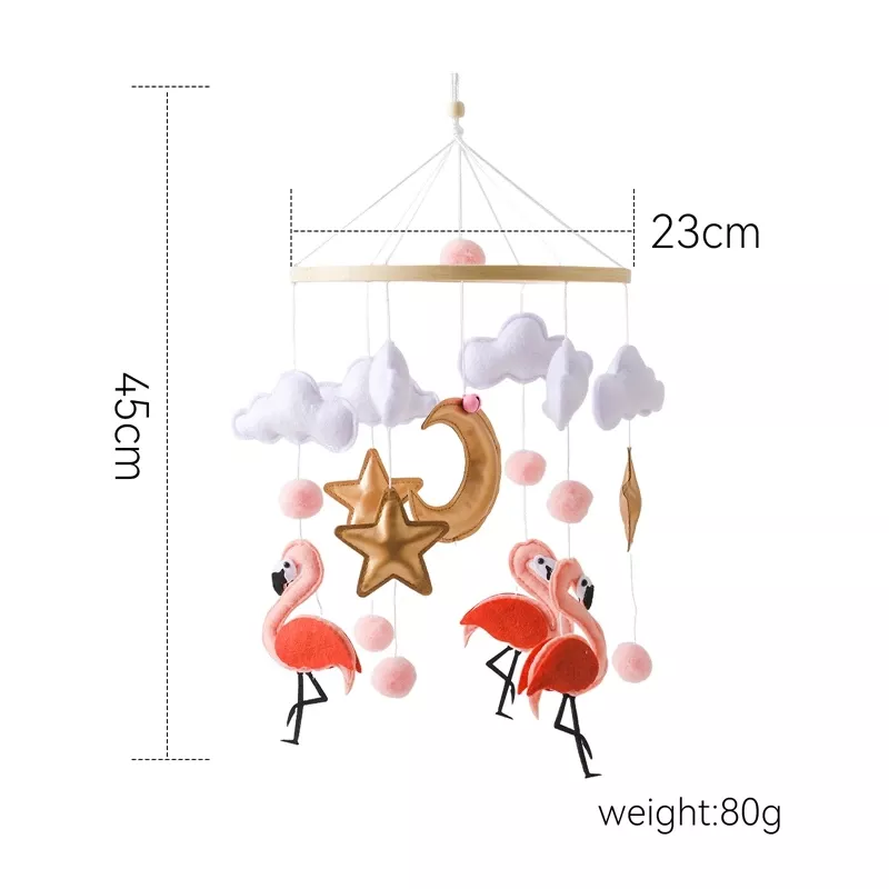 Make bedtime a magical experience with this beautifully crafted Wooden Baby Crib Mobile featuring soft felt flamingo toys and a soothing musical bed bell. Designed to comfort and entertain newborns from day one, this charming hanging mobile brings a peaceful atmosphere to your baby’s nursery while supporting early visual and auditory development.